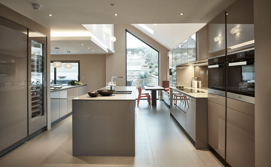 The project features SieMatic S2 kitchen in 'Agate grey' gloss finish, Caesarstone quartz worktops, Spekva timber breakfast bar and co-ordinating dining table, Bonaldo dining chairs, Gaggenau and Miele appliances, Westin's extraction, Quooker boiling water tap and Dornbracht hardware.